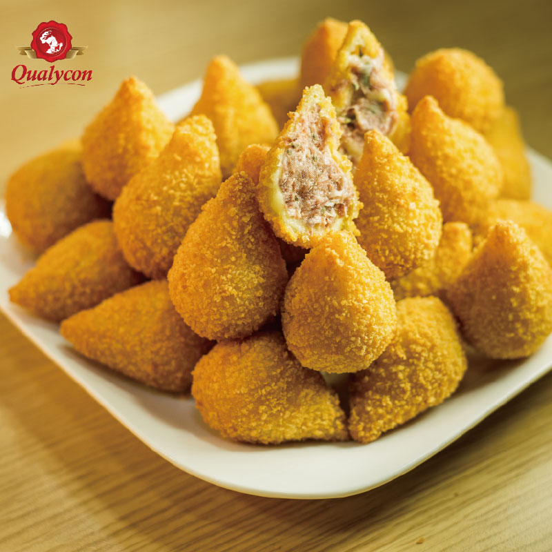 Coxinha(炸鸡肉面包)是巴西美食最经典的小吃之一,在巴西的咖啡店,巴士便利店等都能买到,独特鸡腿模样,里面包着切碎的鸡肉或者肉类,裹上面团,模压成类似于鸡腿的模样,味道鲜美。